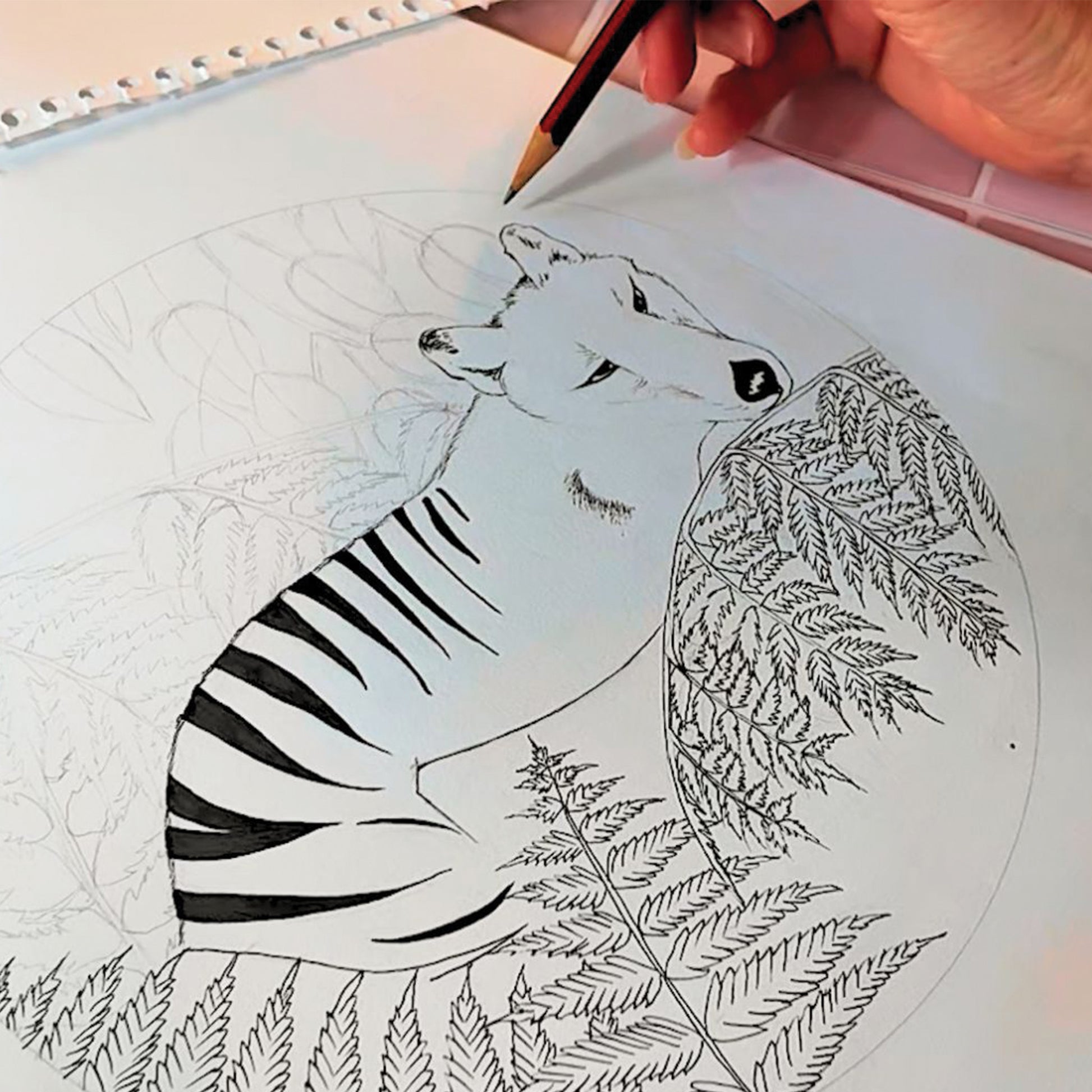 The artist’s choice to portray the Tasmanian Tiger in a moment of quiet alertness invites viewers to pause and reflect on the fragile relationship between humans and the natural world. Once native to Tasmania and mainland Australia, the thylacine now stands as both a symbol of loss and a reminder of our responsibility to protect what remains. This artwork speaks directly to that sense of reverence. Though rendered with modern illustration tools, the piece feels timeless—anchored in a deep respect for Australia’s unique wildlife and the stories carried by the land.