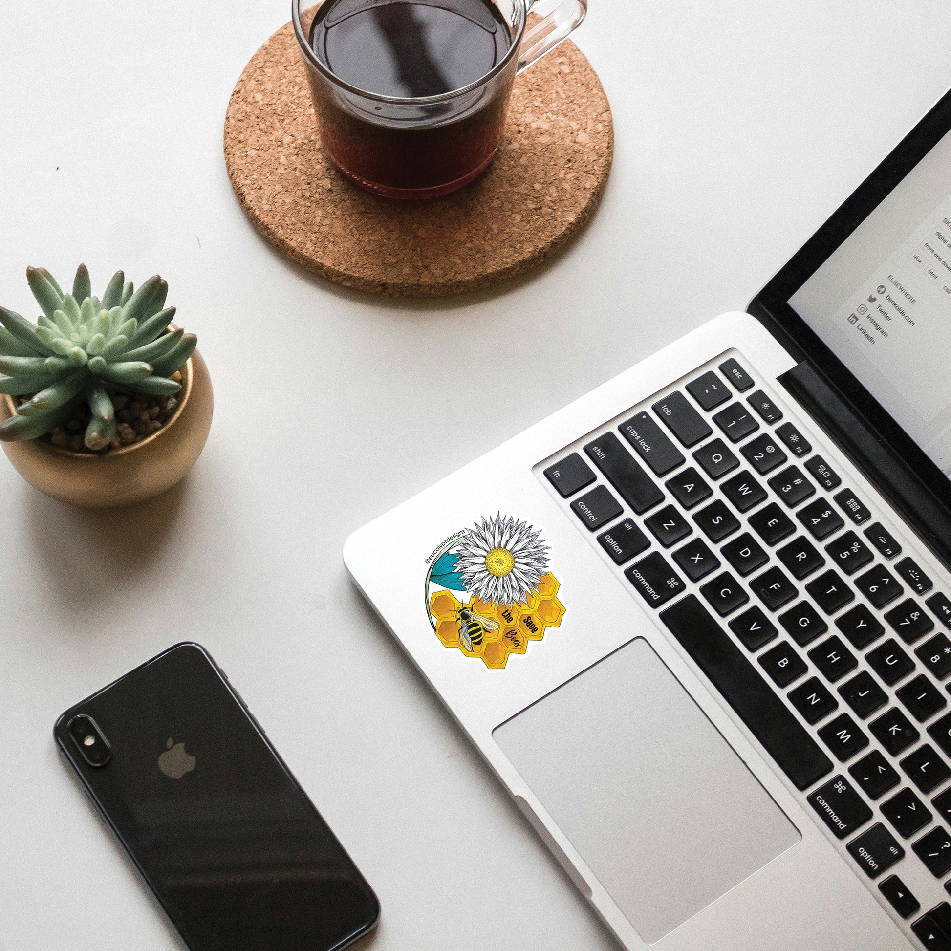 Perfect for laptops, water bottles, notebooks, phone cases, or even garden tools, this sticker is made from premium glossy vinyl. The intricate design captures the delicate relationship between bees, blossoms, and the ecosystem they support.