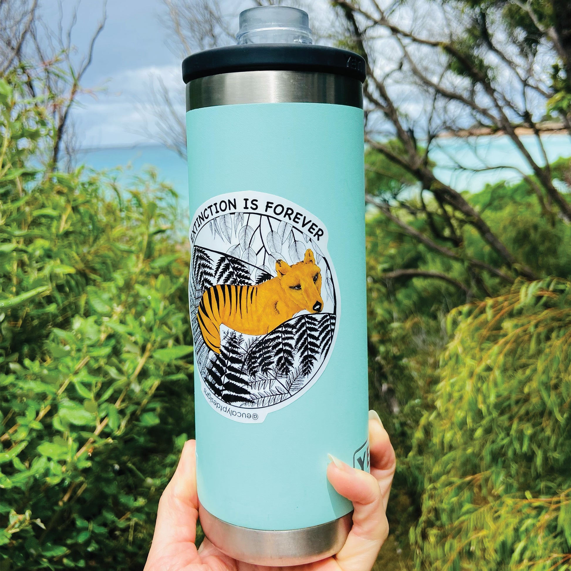 Printed as a high-quality, durable sticker, it’s perfect for water bottles, laptops, journals, sketchbooks, travel gear or van life setups. Its rich colours, hand-drawn textures and traditional art techniques give it a unique, fine-art feel that stands out from mass-produced designs. Whether you're an Australian wildlife lover, conservation advocate, nature enthusiast or art collector, this Tasmanian Tiger sticker offers a meaningful way to express your values.